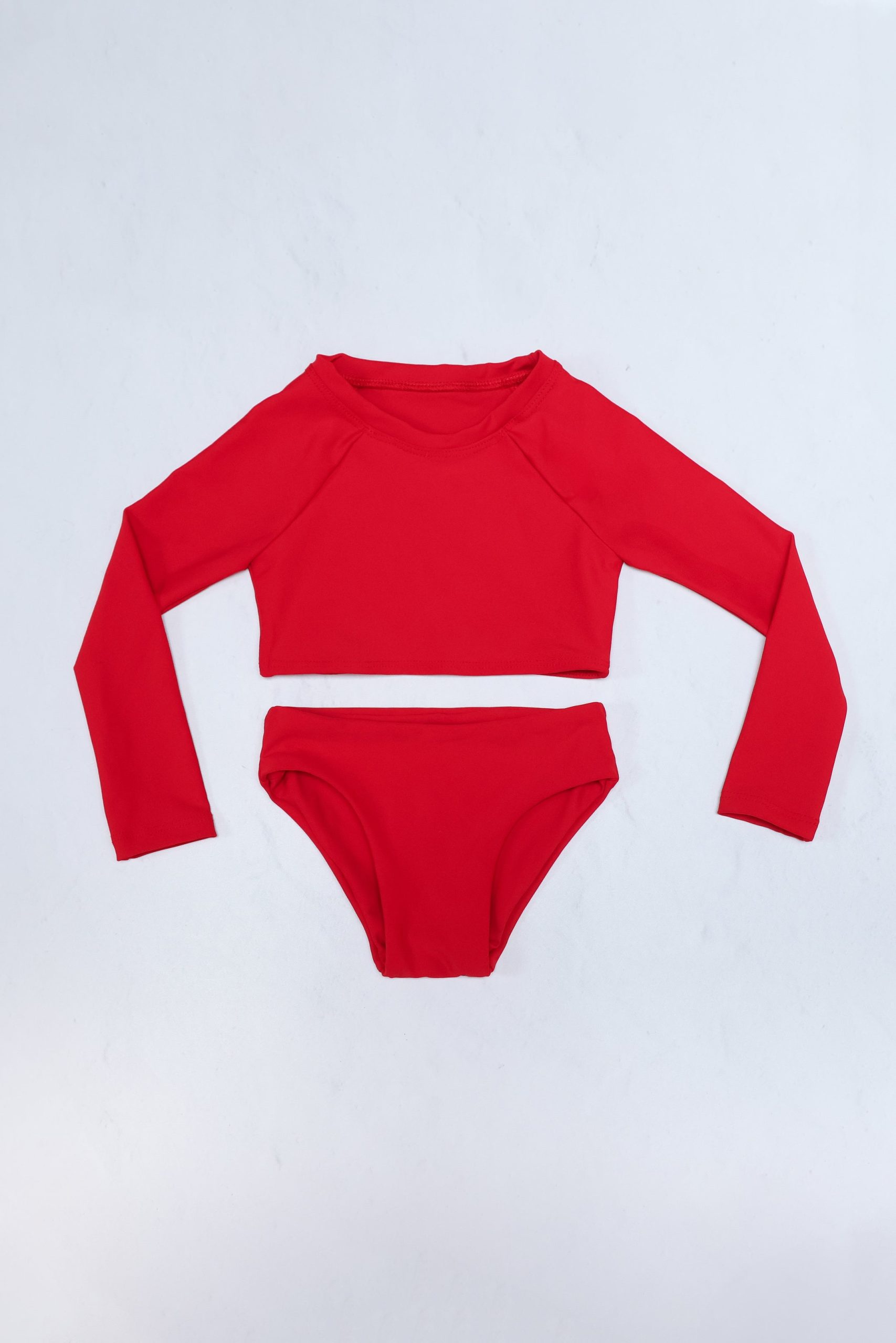 The Quincy set comes with a long sleeve rashguard-style top and coordinating bottoms, perfect for long days in the sun with your mini!