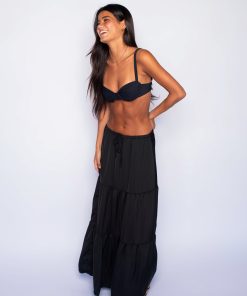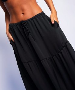 skatie Women’s Kristina Maxi Skirt Satin – Black | Black