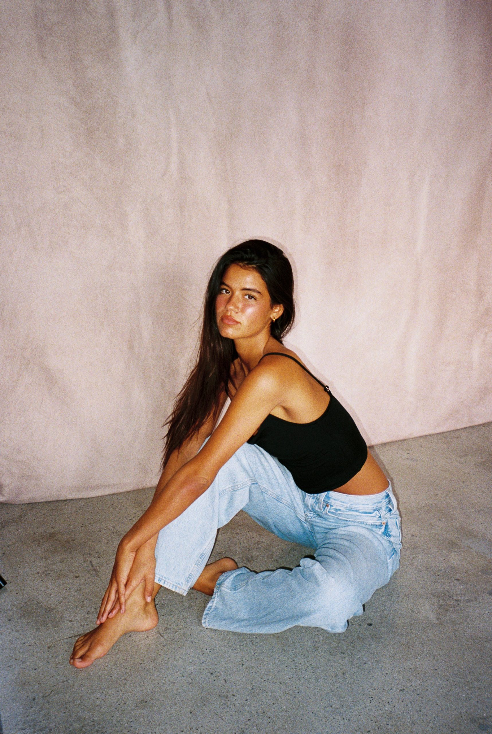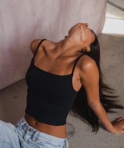 The Mila Top features a draped cowl neckline and adjustable spaghetti straps, with a fitted silhouette and doubled front for a sleek, flattering finish.