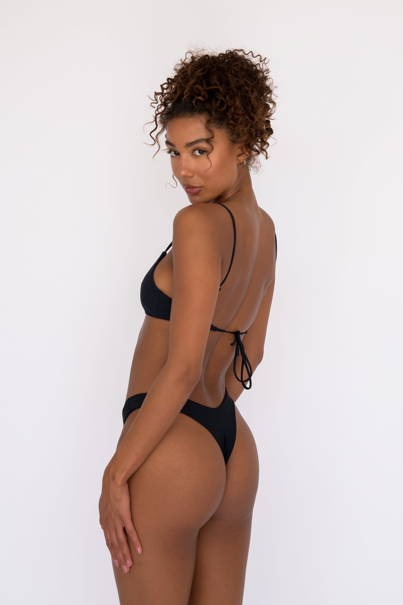 Suns out, buns out with Alana—the thong bottom inspired by girls who want to shred waves and turn heads by the pool. Zero elastic gives you a snug, flattering fit while a curve in the booty makes your bum look extra peachy. With minimal coverage to leave you free of tan lines, Alana is the perfect companion for your next day in the sun.