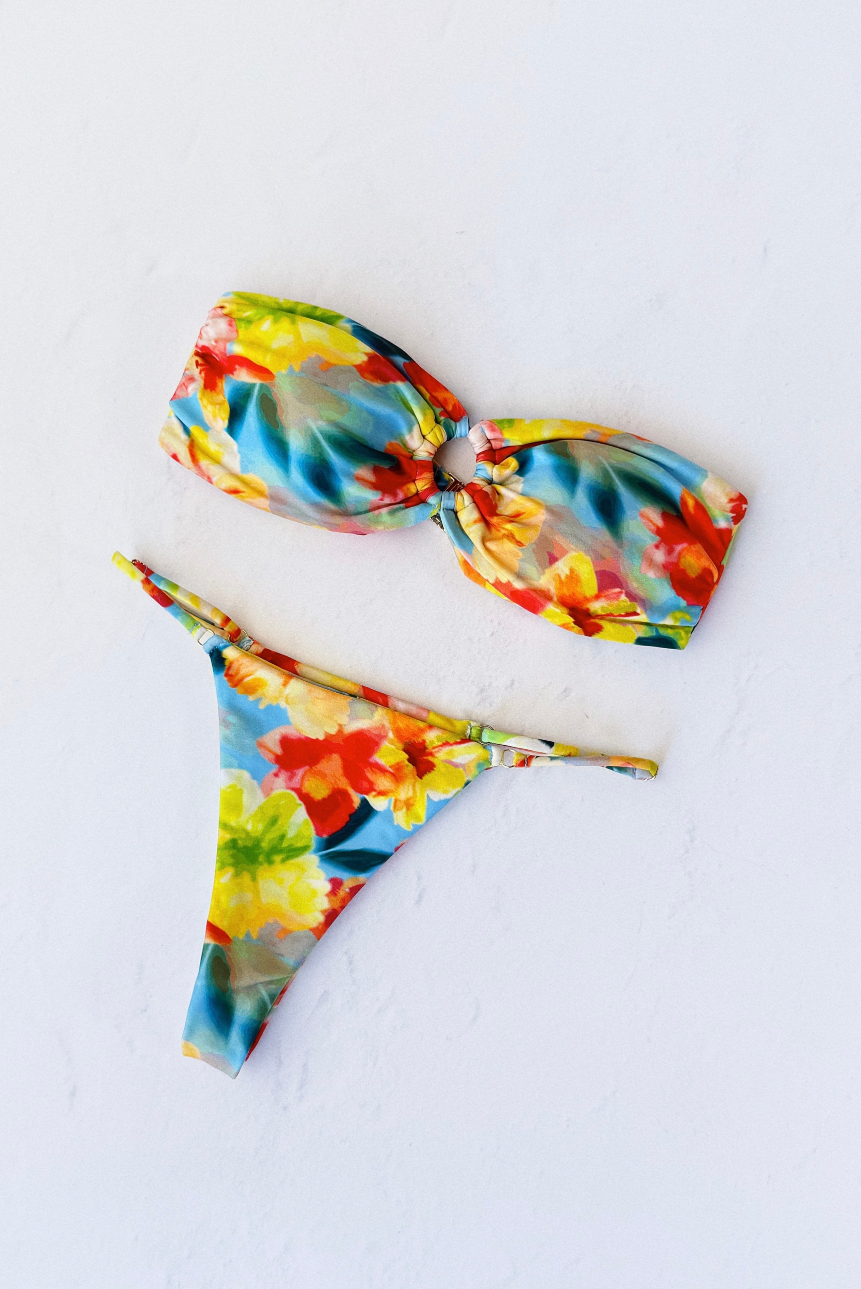 An itty-bitty adjustable string-thin bikini. As always, pinch is not a problem. Neither are tan lines. Harli has tiny side coverage and minimal back coverage, and she can be hiked up for a mid-rise fit or worn low. It’s the new team favorite.