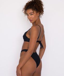 Sizing: Kate has good coverage, so if you want good cleavage, size down. She ties in the back for a customizable band fit.