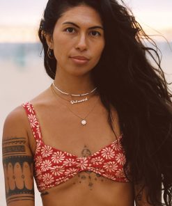 The Lottie Top features adjustable shoulder straps with a fixed bust band and a skimpier cut reminiscent of the Gisele Top, offering a sleek and minimal fit.