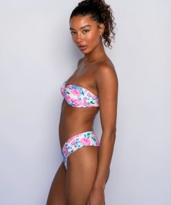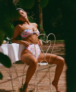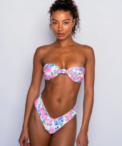 Lyndi is a knotted bandeau with removable halter straps. This top has structured sides that keep her in place, but her skimpy coverage makes her perfect for tanning! She’s got removable padding that allows the top to hold better shape.