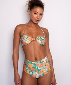Lyndi is a knotted bandeau with removable halter straps. This top has structured sides that keep her in place, but her skimpy coverage makes her perfect for tanning! She’s got removable padding that allows the top to hold better shape.
