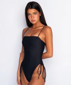 This moderate coverage one piece has an adjustable leg that can be tied high or low. She has a classic square neckline, great booty coverage and adjustable straps — perfect for our active girlies, aka surf approved.