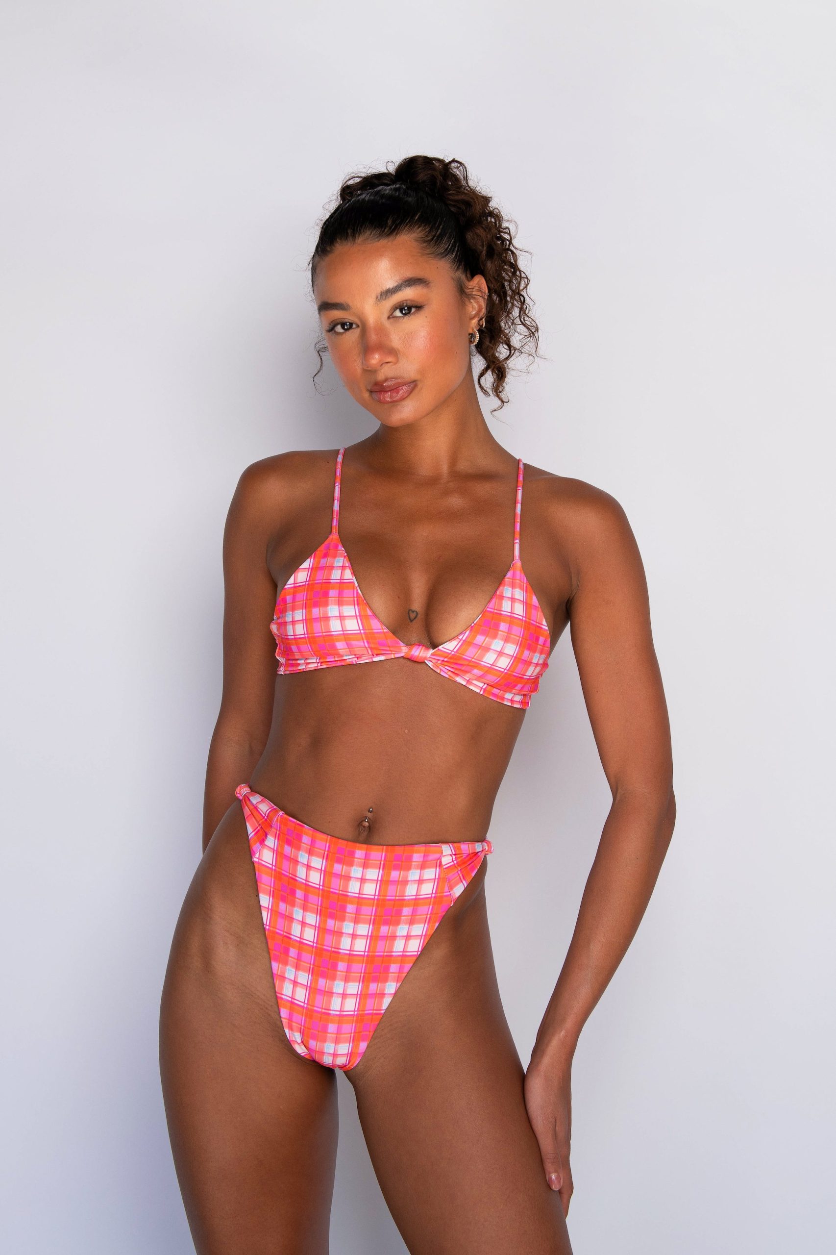 Make waves with Salty, our high waisted bottom! Her cheeky/moderate coverage and seamless fit won’t have you adjusting your suit all day, and her knot details add a fun twist to a classic shape. Salty’s high leg makes yours look miles long, and no elastic means no uncomfortable pinching.