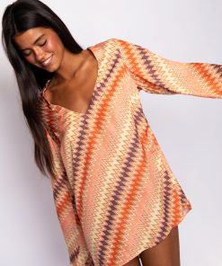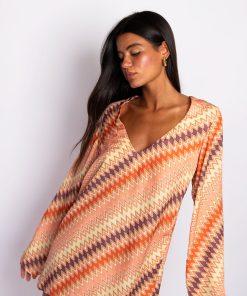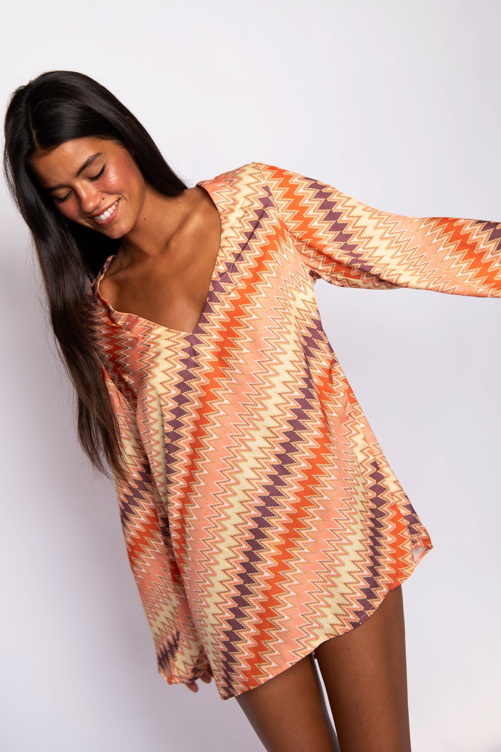 The Viginia Tunic is a classic cover-up shape has a slight belle sleeve and is long enough to style going out after the beach.
