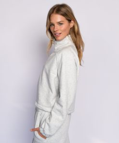 This cropped length quarter zip has an elastic adjustable waist so you can cinch her tight or wear her loose for a longer line. Made from our sustainable fleece, she’s soft as butter but warm enough for cold winter nights, even in Skatie’s hometown Chicago.